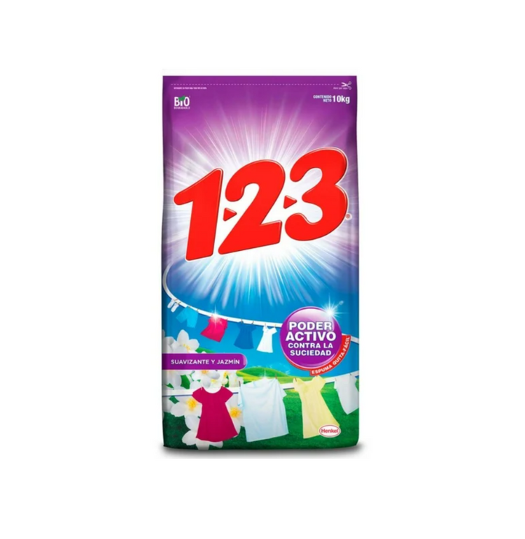 Detergente en Polvo 1.2.3 Suavizante y Jazmín 10 kg