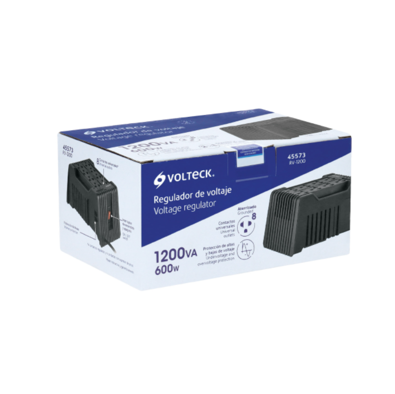 Regulador marca voltek, 8 contactos color negro, 1200 VA/600 W